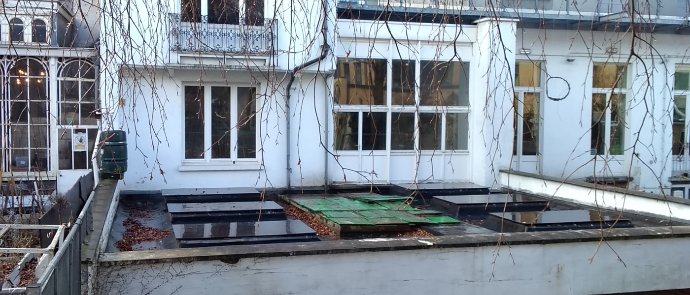 - en the renovation of the rear building: renovation of the roof shell of the rear building with a high level of insulation.