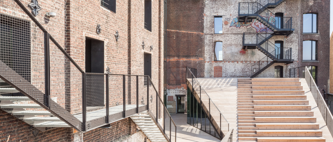 The COOP, a 5.099m² site bordering the canal in Anderlecht, is open since October 2016.  The former Moulart mill has been completely converted into an economic and cultural centre, both a place of work and learning.