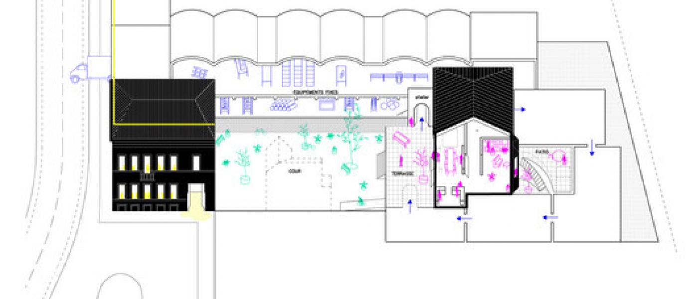 The objective is to build a cultural infrastructure in a neighborhood where there is none and where there is no socio-artistic dynamic: renovation, redevelopment and equipment of a 2088 m² building!